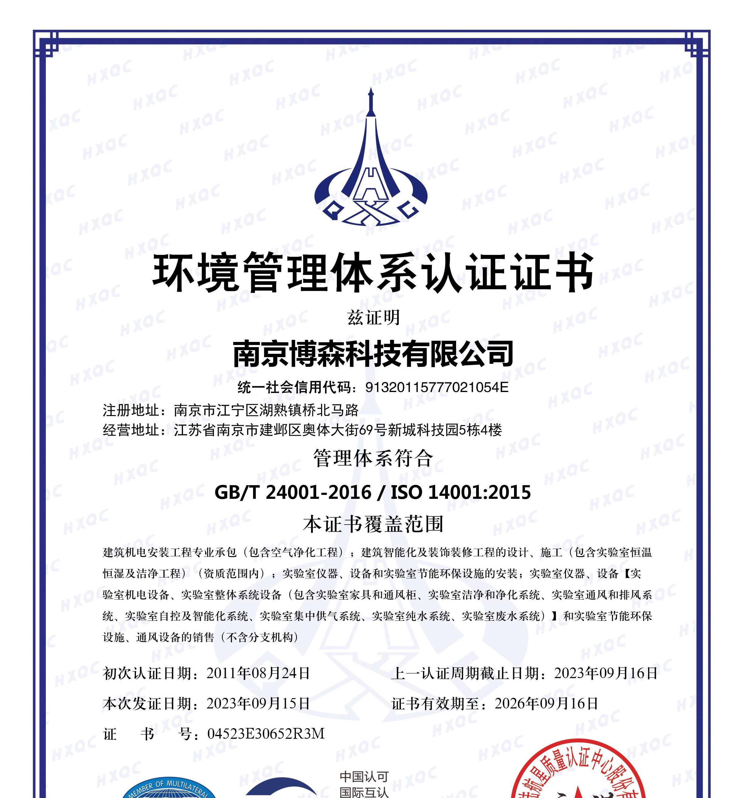 環(huán)境管理體系認(rèn)證證書