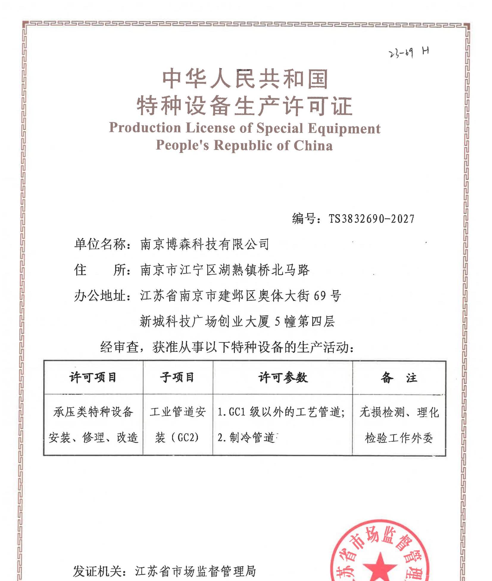 特種設(shè)備生產(chǎn)許可證