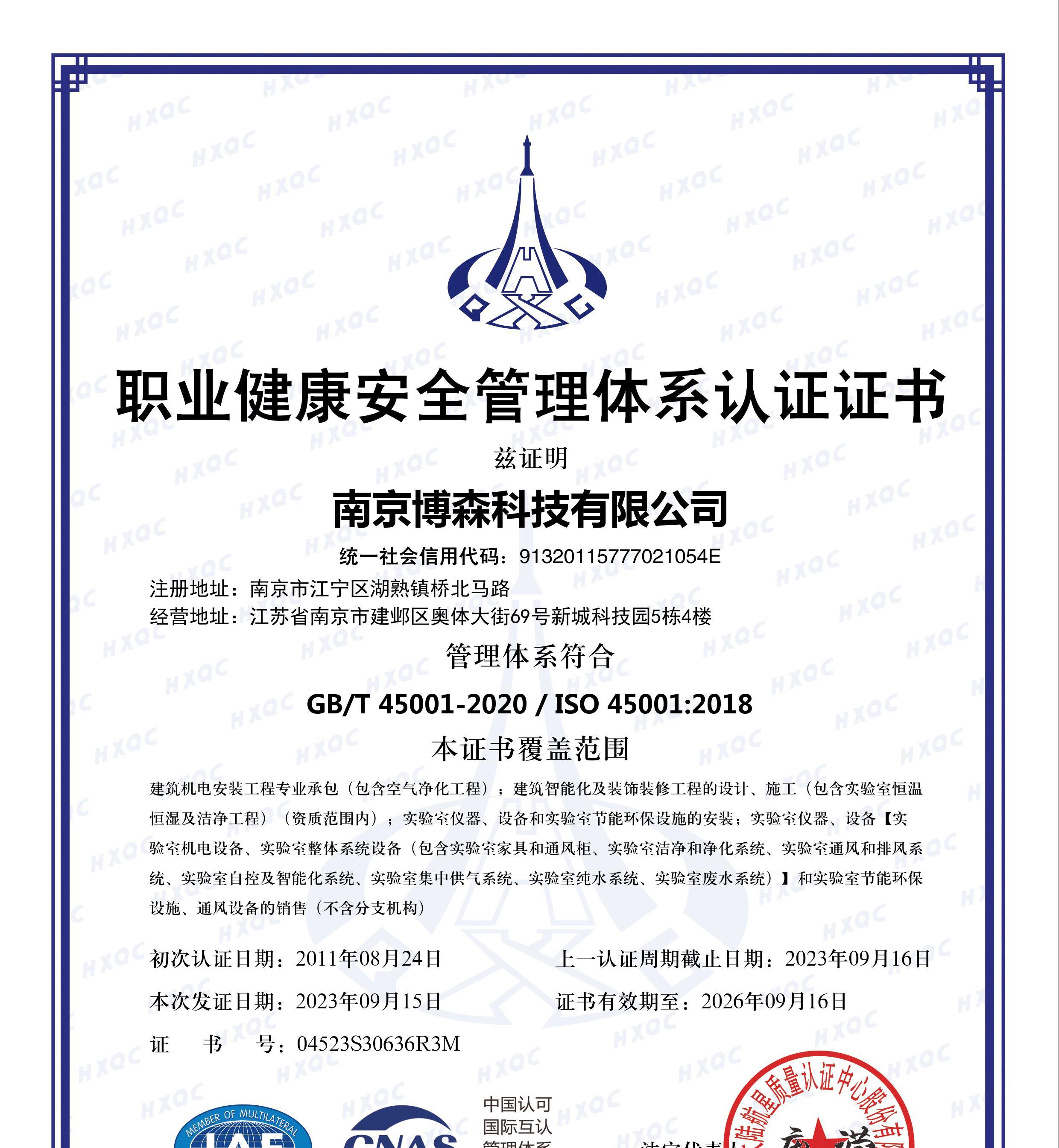 職業(yè)健康體系認(rèn)證證書