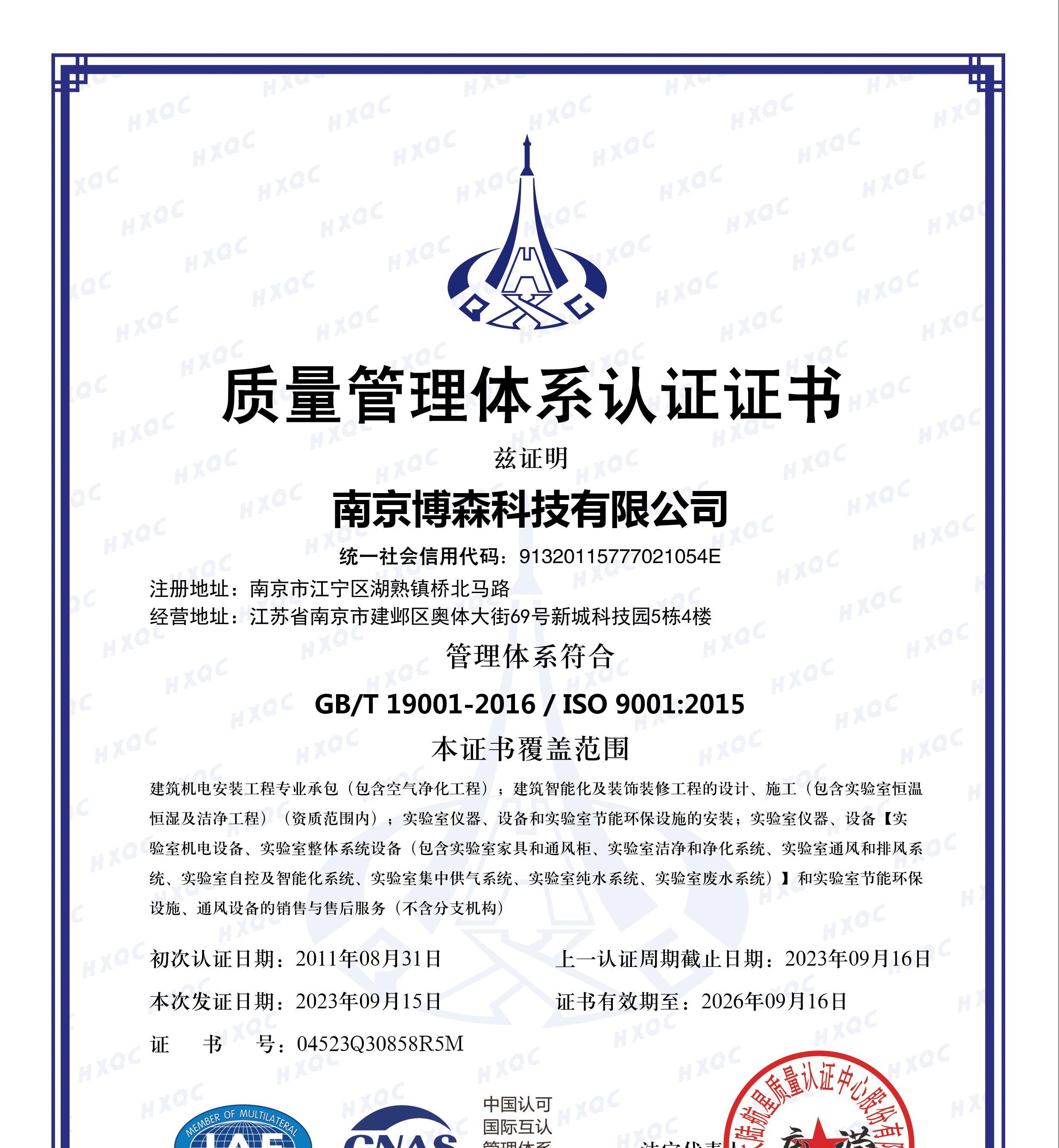 質(zhì)量管理體系認(rèn)證證書